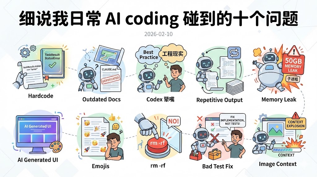 这一年大量 vibe coding,经典翻车现场真的不少。有些是模型习惯问题,有些是 Agent 工具链缺陷,还有些属于“工程现实 vs 最佳实践”的冲突。下面这十个算是我最常遇到、也最容易让人 当场没绷住 的。