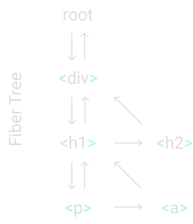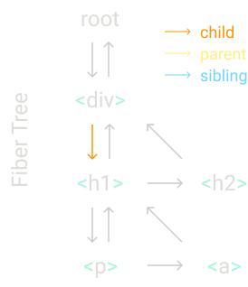 From our example, when we finish working on the div fiber the next unit of work will be the h1 fiber.