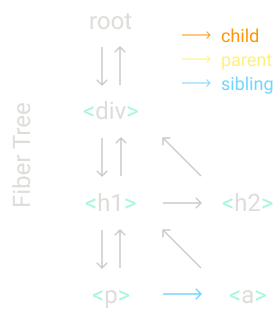 One of the goals of this data structure is to make it easy to find the next unit of work. That's why each fiber has a link to its first child, its next sibling and its parent.